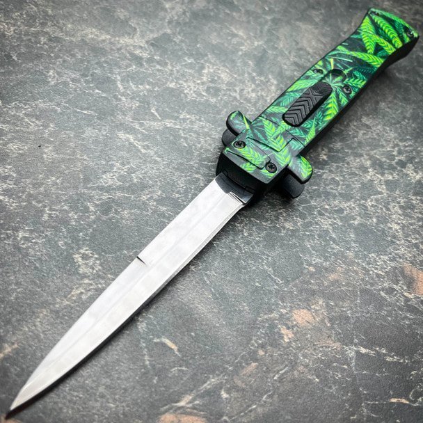 Holen Sie sich das Beste aus beiden Welten mit dem Stiletto OTF Automatic. Dieses Messer vereint auf brillante Weise den klassischen Stil eines italienischen Stilettos mit der taktischen Geschwindigkeit eines OTF. Ein Frontlader-Daumenschieber feuert und zieht die Klinge mit sanfter, automatischer Präzision zurück. Ergänzen Sie Ihre Sammlung mit dem 9-Zoll-Stiletto OTF Automatic um ein einzigartiges Design.