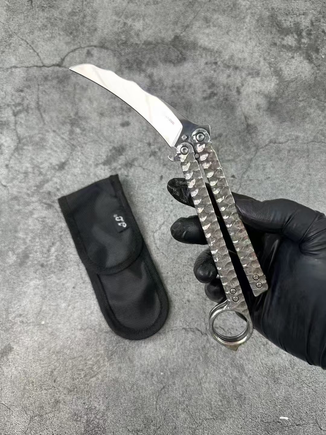 Balisong Karambit Eagle Claw Variation Schleudermesser Farbe Titanium Edition,Butterfly messer