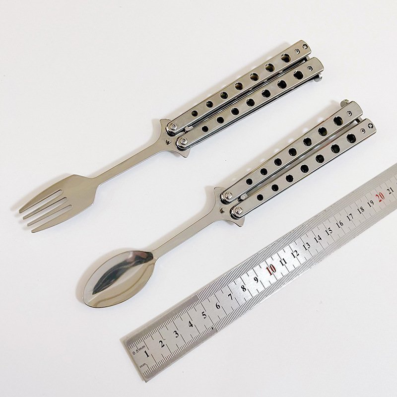 Balisong-Löffel, Butterfly-Trainingsmesser, Wurfmesser, Suppenlöffel, Gabel