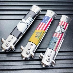 5,75 Zoll Konföderiertenflagge D/A OTF Automatisches Messer Schwarz Tanto